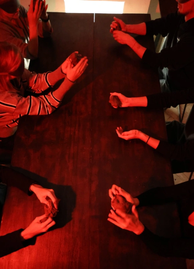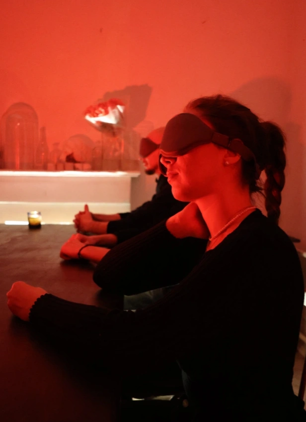 1,5 часа в полной темноте — в камерном формате и бережной атмосфере. Ты работаешь самостоятельно и в парах, шаг за шагом следуя голосовым инструкциям. Созданные объекты остаются в пространстве: мастер-класс ориентирован на процесс и ощущения.