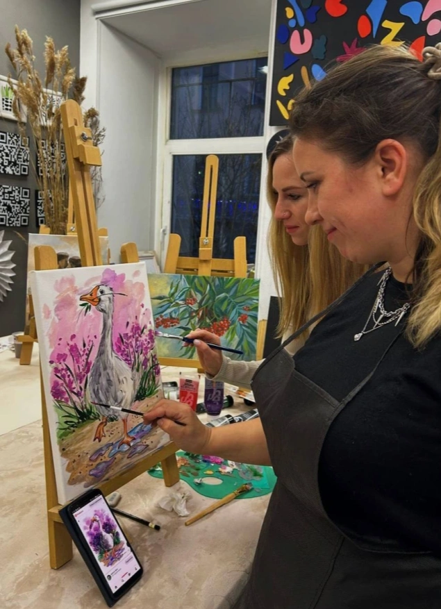 Пригласи свою вторую половинку и создайте парную картину или романтическую валентинку. На мастер-классе вы освоите различные техники живописи, научитесь основам композиции и цветового сочетания.