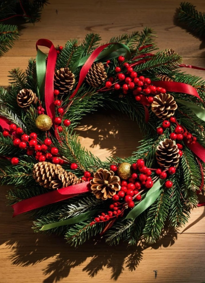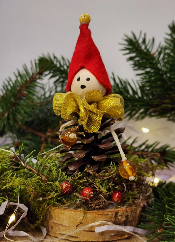 - Новогодняя композиция, на деревянном спиле с нобилисом, шишками и свечами.