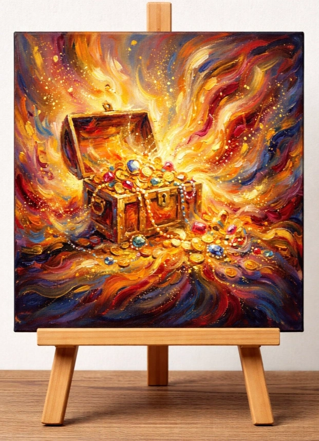 — Сундук с сокровищами в абстрактной манере станет символом твоих скрытых резервов и магнитом для удачи.