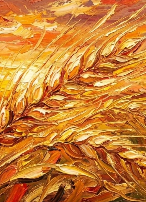 — Колос пшеницы — архетип урожайности. Каждый мазок — это шаг к стабильности и материальному удовлетворению.