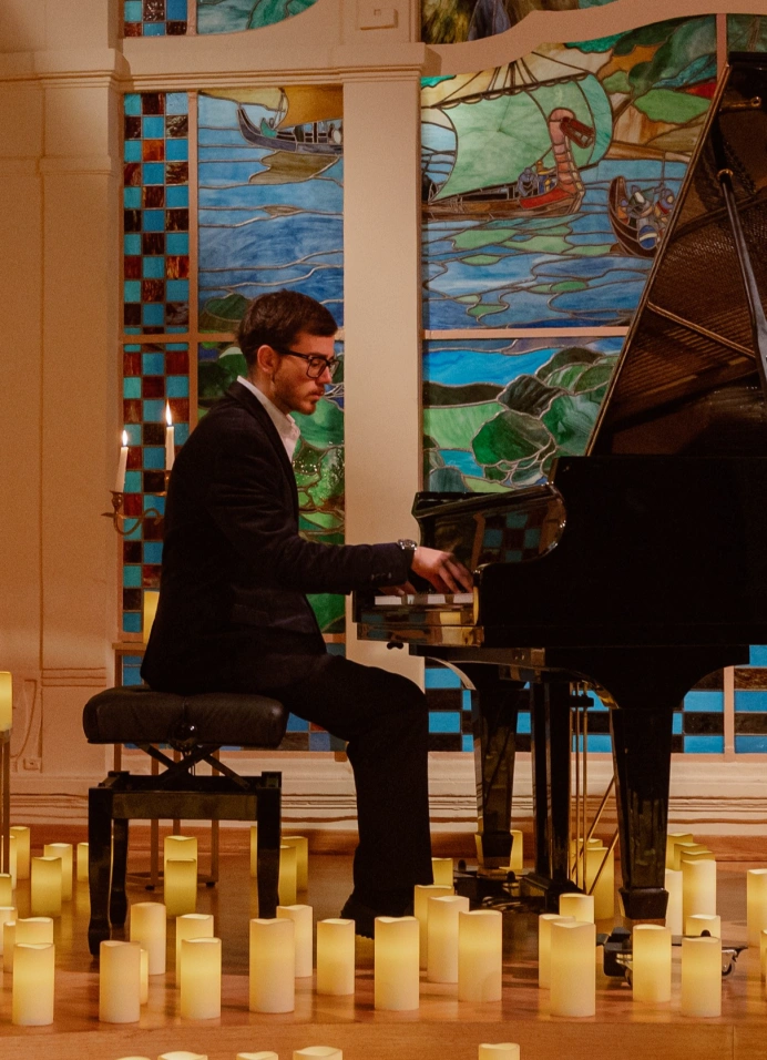 Особенный музыкальный ужин при свечах в грандиозном зале ресторана «Европа».