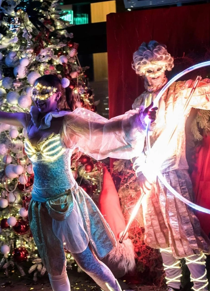 — Неоновое шоу «Иней» — завораживающее соединение света и движения, создающее атмосферу зимней сказки. Огненное шоу на улице.