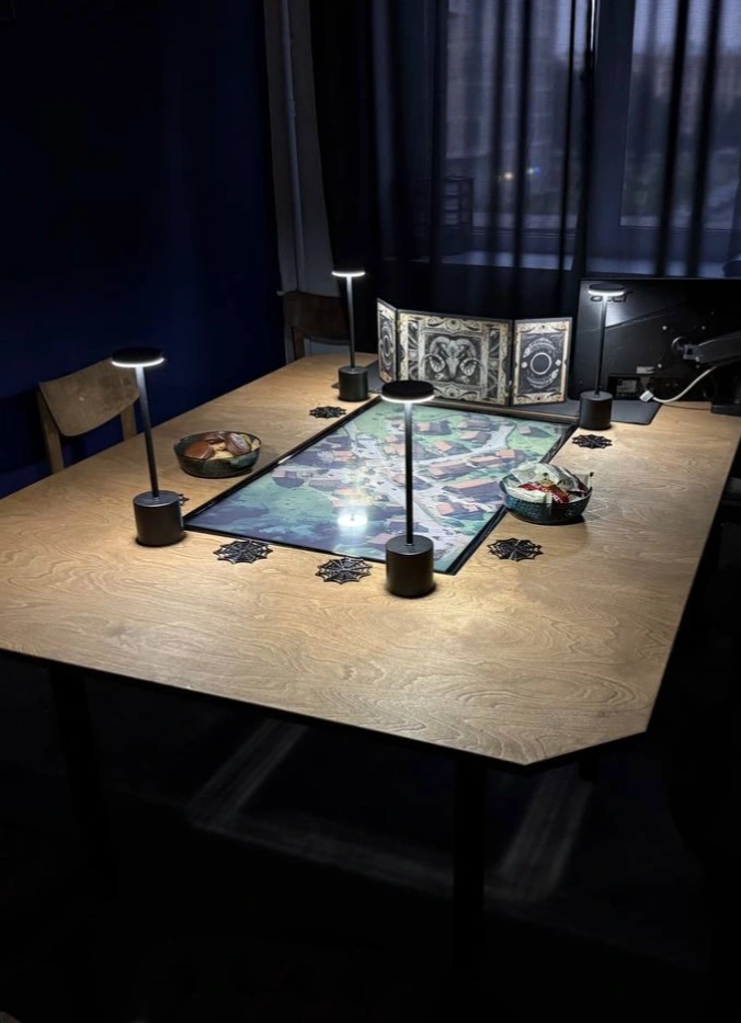 — Интерактивный стол с экраном для отображения карт, анимации и визуальных эффектов.