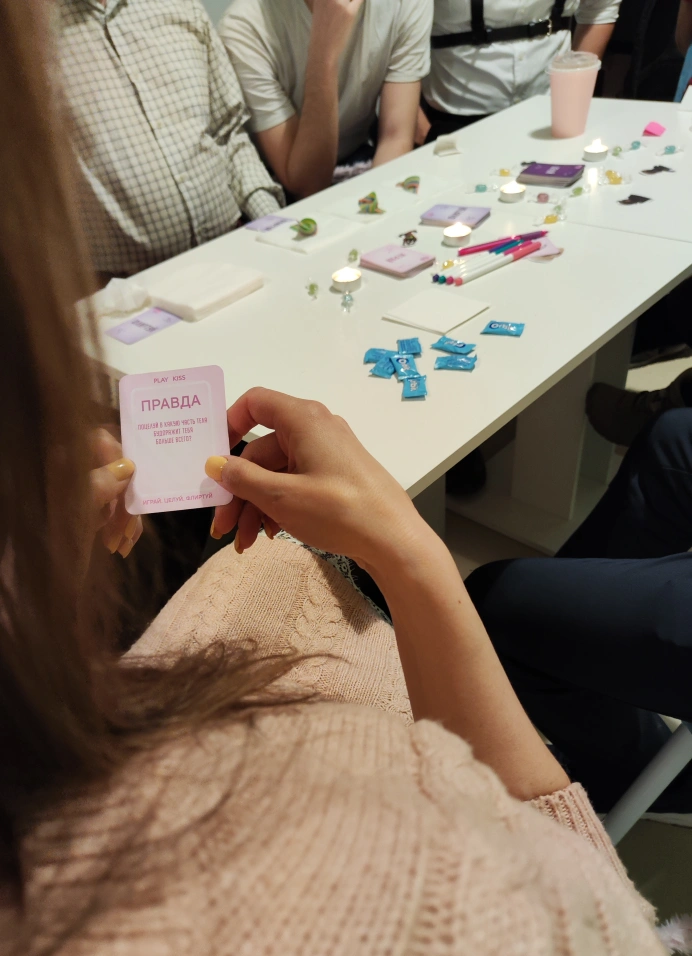 Play.Kiss Игра — чувственный интерактивный формат, где всё построено на бережном взаимодействии, внимании к себе и другому, лёгком флирте и тепле.