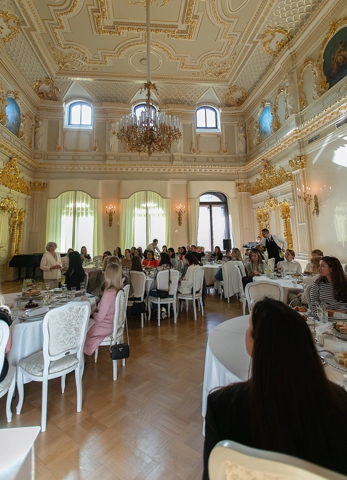 Показ пройдёт в концертном зале Особняка Мясникова — месте, где в прошлом столетии собирались главные представители светского общества Петербурга и России. До начала события пригласят тебя в Колонный зал на фуршет с разнообразными закусками, десертами и игристым.