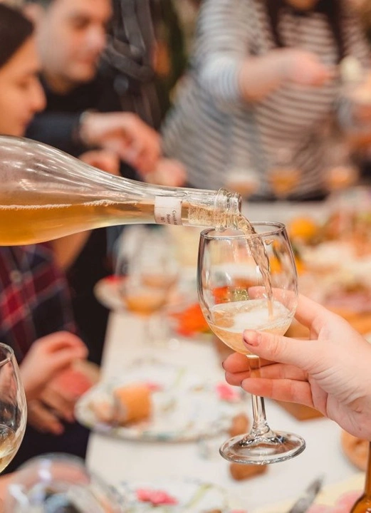 После обычной программы в производственной части, где ты познакомишься с процессом производства сидра и даже собственноручно разольёшь всем по памятной бутылочке сидра, здесь устроят настоящее новогоднее застолье: с Оливье, икрой, шпротами и мандаринами. И, конечно, с морем сидра.