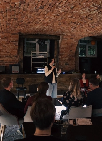 Здесь выступают звёзды StandUp — те самые, которых ты обычно смотришь в YouTube, только теперь они шутят прямо перед тобой. Кухня космос, интерьер стильный, атмосфера — как будто пятница наступила раньше.