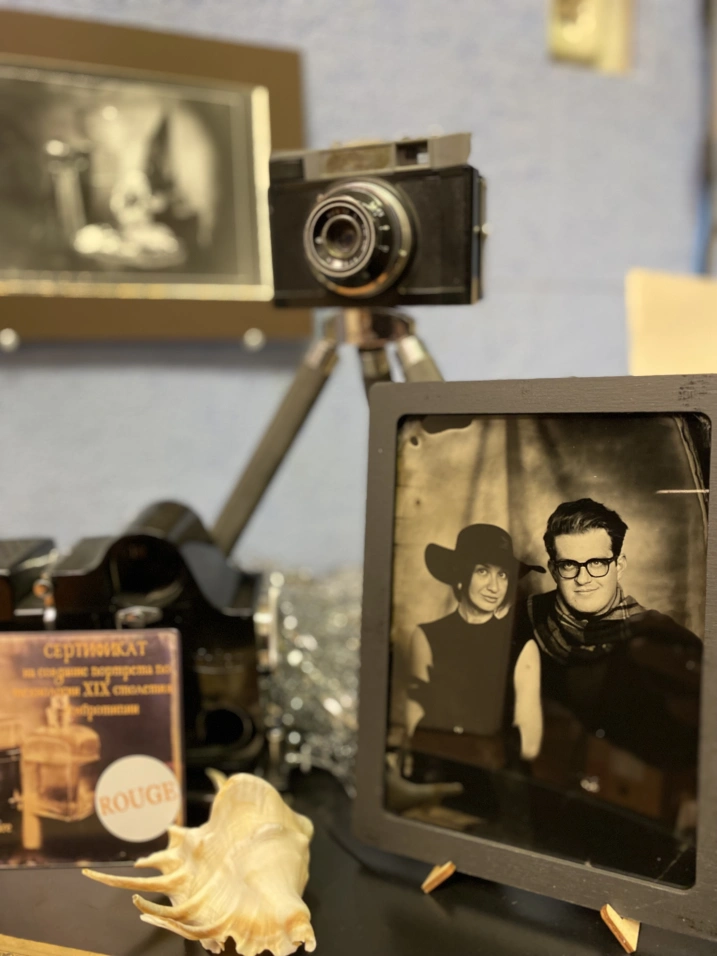 Старинная фотолаборатория в сердце петербурга, где есть только вы, свет форматная камера как в XIX веке и химия, которая прямо на ваших глазах проявит ваш портрет на стеклянной пластине.