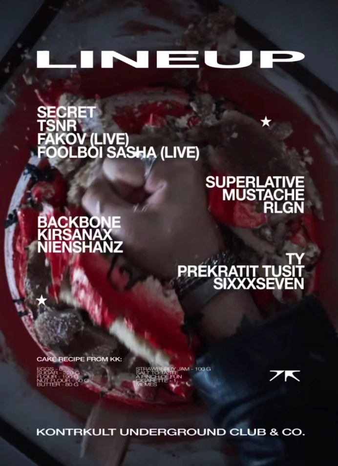 FAKOV / SUPERLATIVE / MUSTACHE / TSNR / BACKBONE / RLGN / KIRSANAX / NIENSHANZ / TY / PREKRATIT TUSIT / SIXXXSEVEN