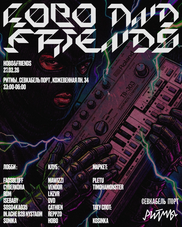 Представители разных дружественных промо-групп будут выстраивать плотную и последовательную линию звучания из техно, электро и брейкбита, а музыкальная программа развернётся на двух локациях —мейне и лобби, формируя самостоятельные траектории внутри общего пространства и создавая ощущение единого механизма, работающего без остановки.