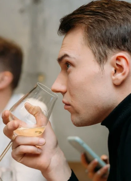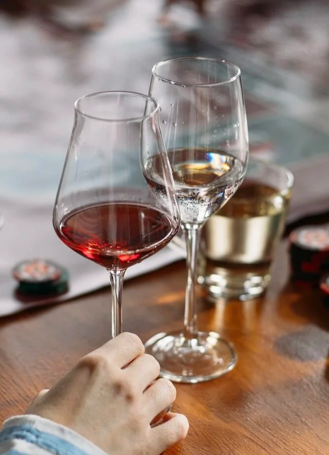 Начнёшь с игристого на велкам, на нём научишься правильно дегустировать. Затем поочередно вслепую будешь пробовать 3 белых и 3 красных вина со всего мира.