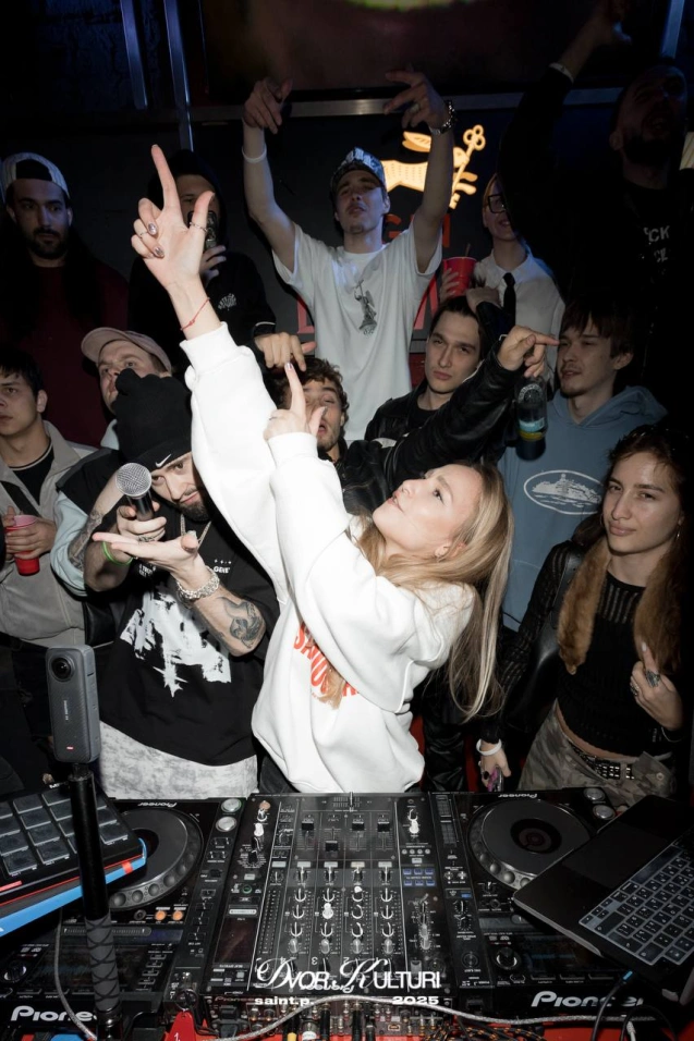 Клуб на одну ночь превращается в советскую гостиную: ковёр как у бабушки, мандарины как в детстве, соседи будто вот-вот зайдут «на минутку». На столе — леденцы-петушки, шоколадные батончики, а в углу уже разминают пальцы те, кто принёс гармошку и баян.