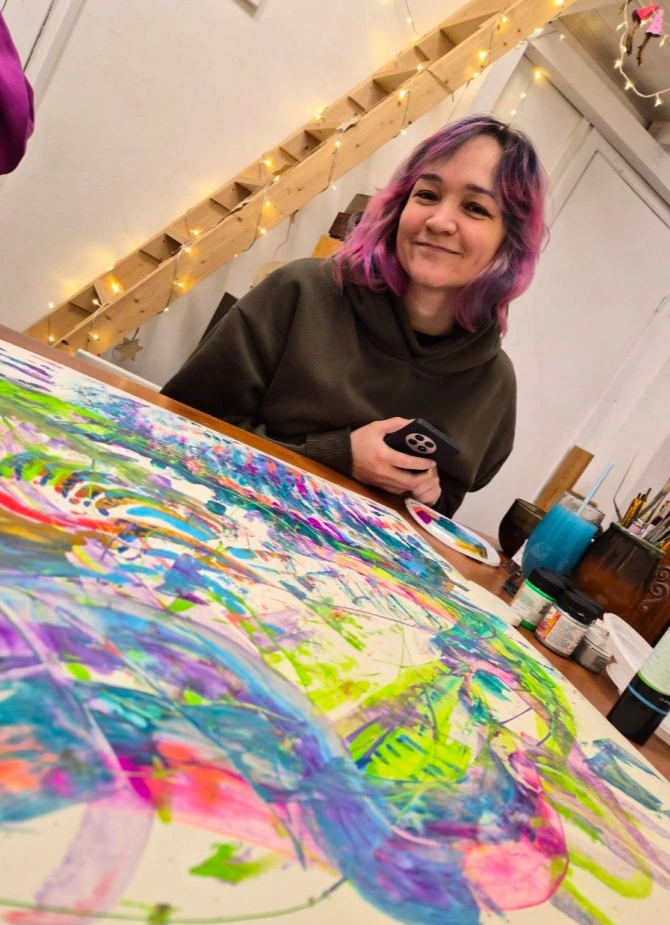 Бережное сопровождение психолога держит процесс в безопасном русле, а поддержка художницы помогает не бояться пробовать любые материалы (а здесь их много разных).