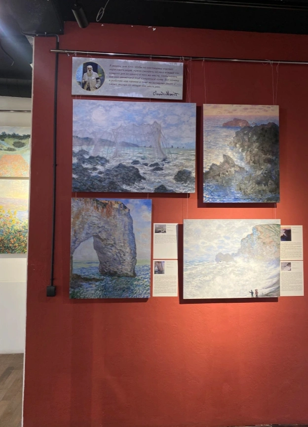 На выставке собраны шедевры из более чем 20 музеев 10 стран мира — как будто все они сошлись в одном зале. Более 100 сюжетов, известных всему миру: «Дама с зонтиком», «Терраса в Сент-Адресс», «Руанский собор», «Вокзал Сен-Лазар», «Стог сена в Живерни», легендарные «Кувшинки» и многие другие.
