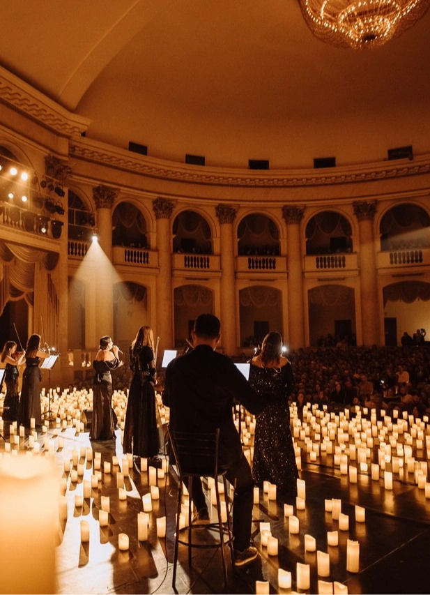 В сиянии свечей ты услышишь мелодии, которые возвращают нас в детство: от «Щелкунчика» Чайковского, пролога к «Гарри Поттеру» и саундтрека к мультфильму «Анастасия» до популярных рождественских хитов «Last Christmas» и «Jingle Bell Rock».
