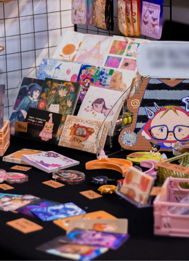 Маркет, на котором можно купить клёвый авторский мерч от различных художников и крафтеров, а авторы - смогут продавать свои прекрасные работы в виде принтов, брелочков и чего только вздумается.