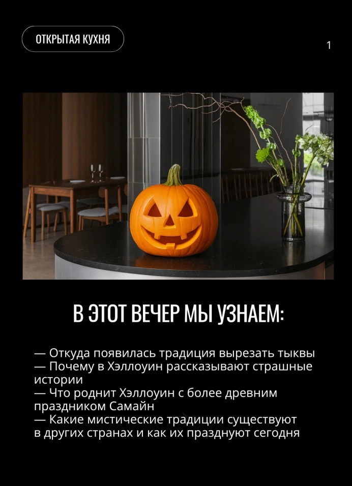 В этот вечер ты приготовишь ужин, пропитанный ароматами осени и атмосферой настоящей мистики и послушаете лекцию про Хэллоуин.