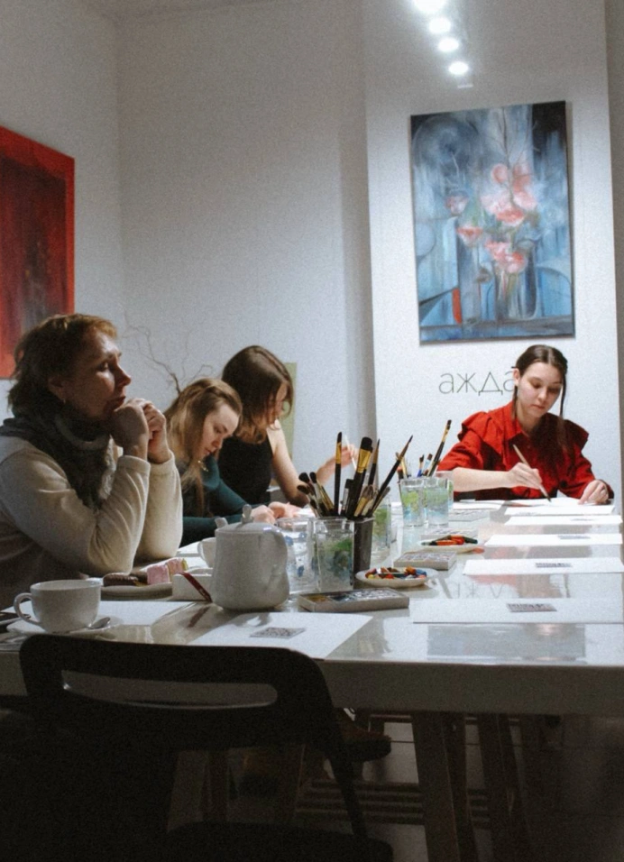 Все материалы предоставляются и включены в стоимость: холст 20х30, акрил, гуашь, акварель, кисти.