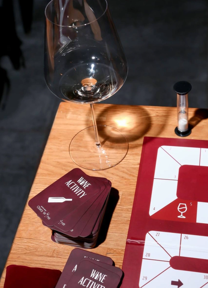Настольная винная игра, где команды по два человека объясняют друг другу слова на винную тематику и параллельно участвуют в слепой дегустации шести вин (и получают за это баллы).