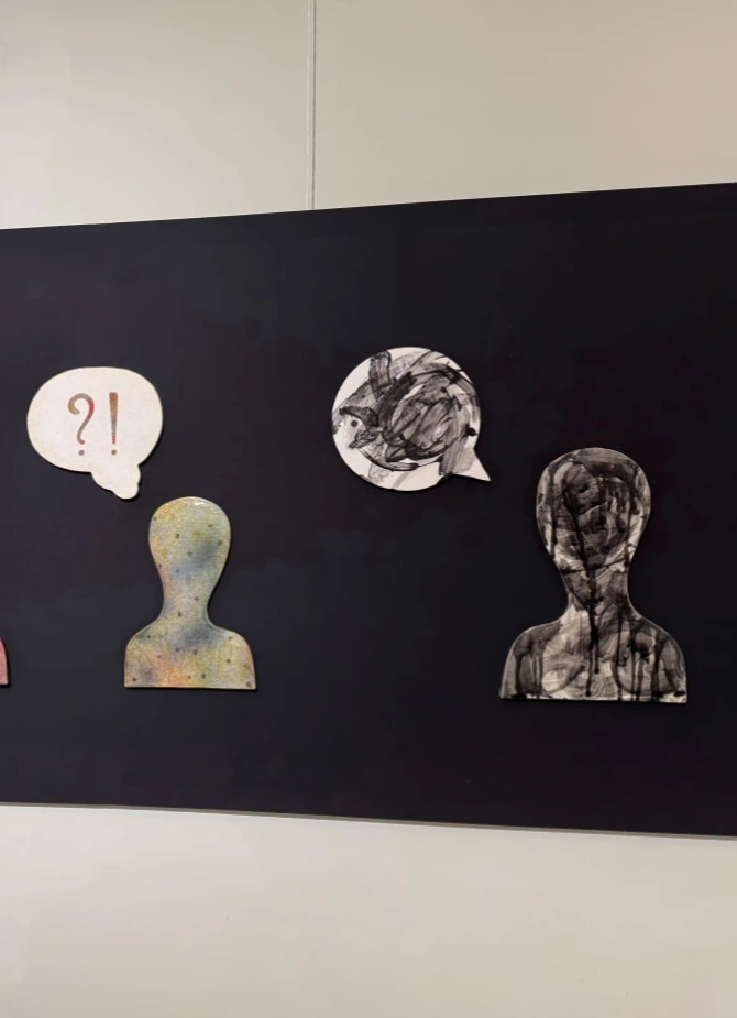 Работы Екатерины сделаны из керамики, материала, который объединяет в себе землю, огонь и случай. В её руках керамика превращается в язык, на котором можно говорить о личном. Здесь есть автопортреты, сердце, фигуры и фразы – всё то, что обычно остаётся внутри. Часть произведений представлены как объекты, другие – как панно, ближе к картинам: они висят на стене, словно страницы керамического дневника.