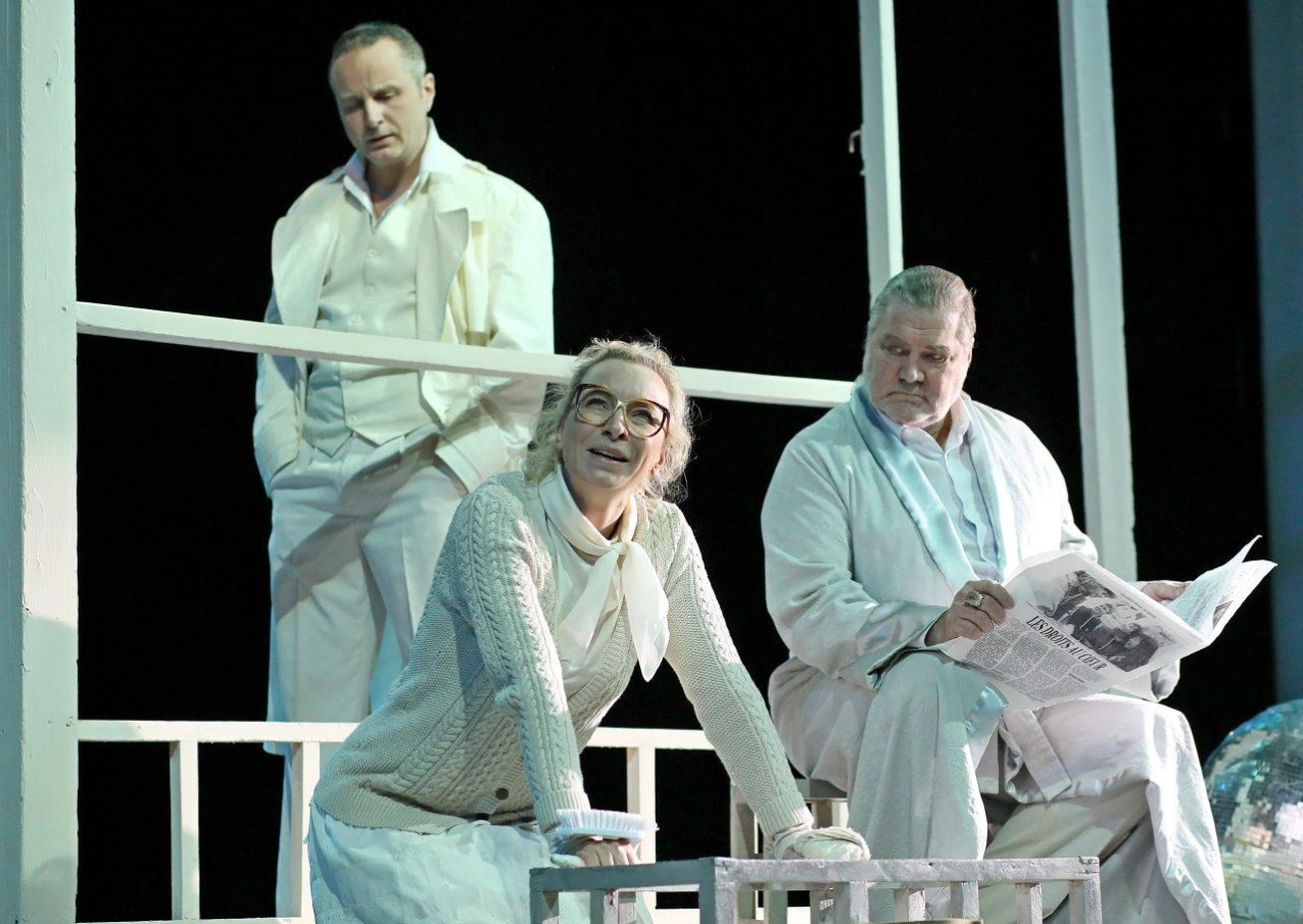 Пока за телом ухаживают врачи, душа Жюльена бродит по Отелю двух миров. Ни один из постояльцев этого загадочного места не знает, как он попал сюда. Никто из них не знает даты, когда покинет гостеприимную гостиницу, равно и не знает, куда отправится дальше. В этом странном мире возможно все, даже чудеса. Напряженное метафизическое ожидание нагнетает, в том числе, безмолвный герой пьесы – лифт, который соединяет небытие и реальность, жизнь и смерть, комедию и трагедию.